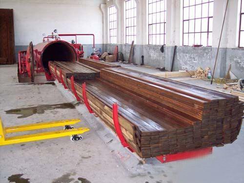 2、加入防腐劑:在保持真空的情況下通過閥門加入防腐劑,以確保相同情況的空氣被截留在木材細胞中。