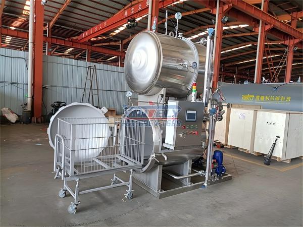 臥式蒸汽殺菌鍋:批量處理(如每鍋 500-1000 罐),搭配自動(dòng)進(jìn)出料系統(tǒng),適合罐頭廠。